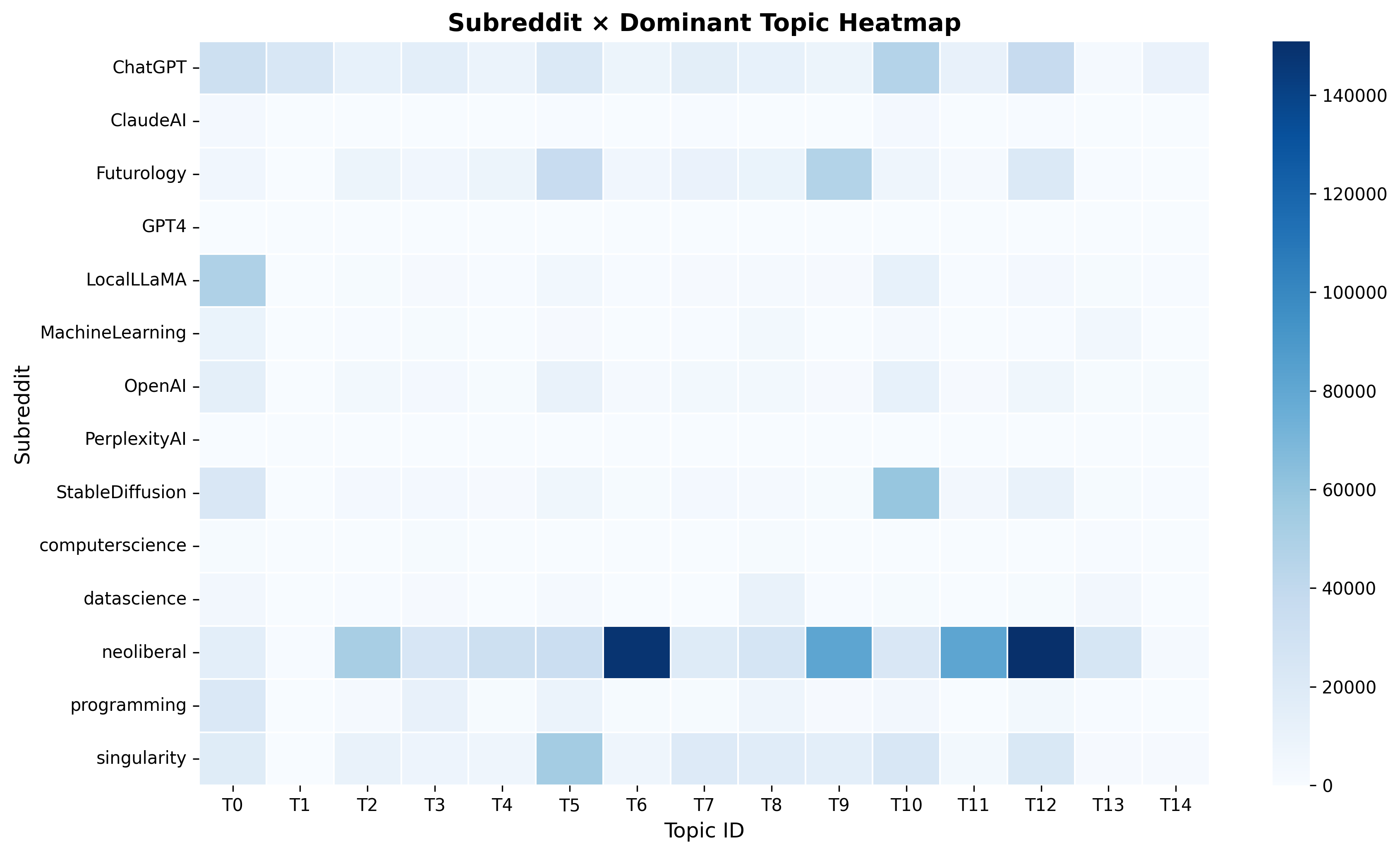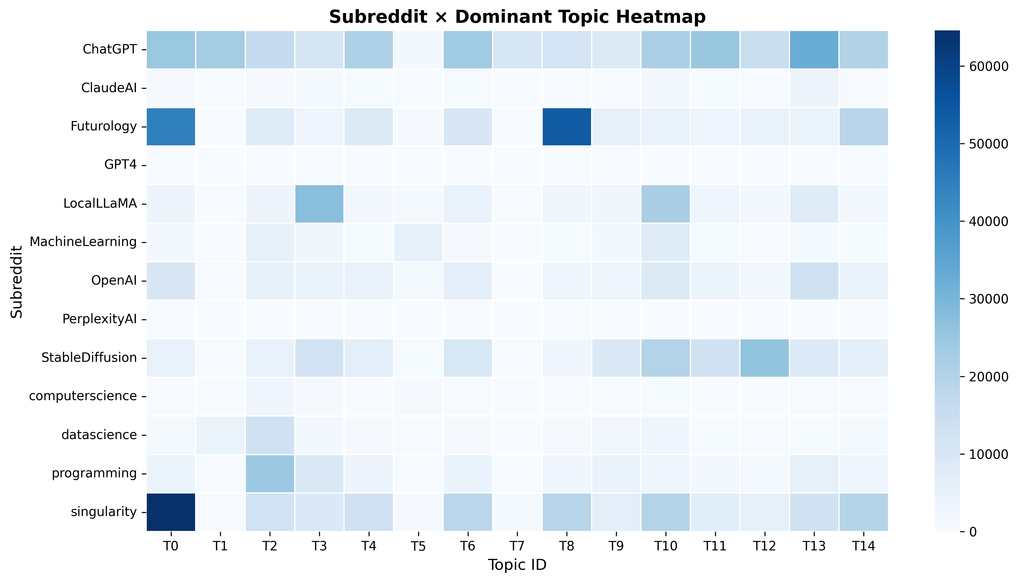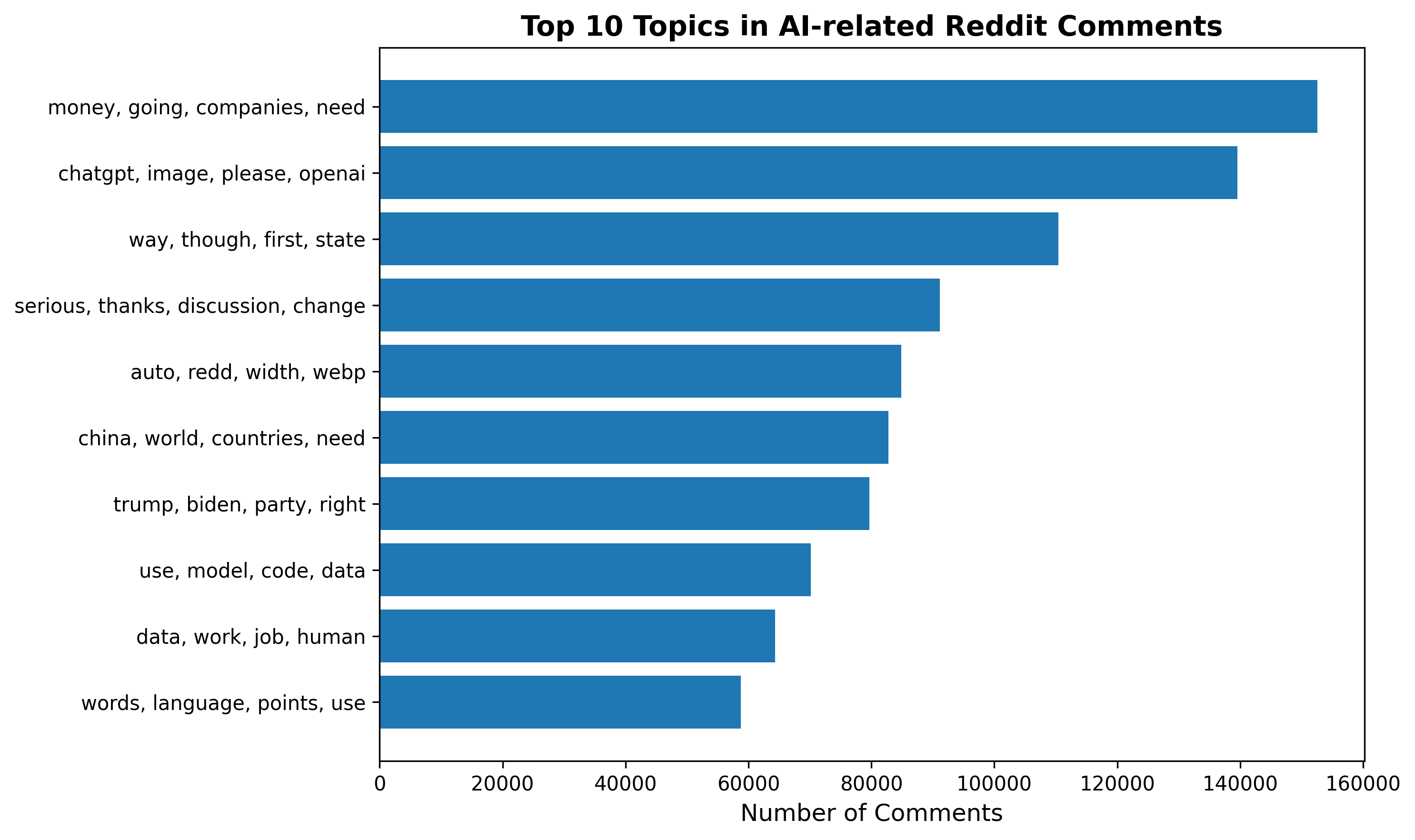 - What are the dominant topics discussed in AI-related Reddit posts?: